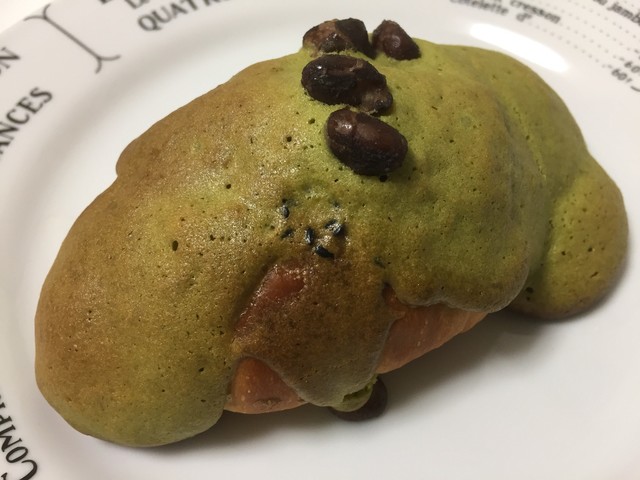 抹茶の日に、抹茶あんバター塩パン180円。新作かな?あんバター塩パンに抹茶クッキー生地をのせて焼いてあって、これが美味しくないわけがない!うまうま!