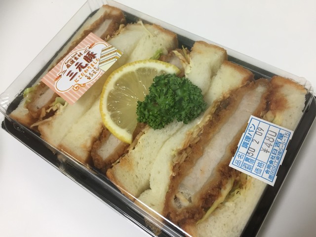 肉の日にはカツサンド。1パック480円。カツが分厚くて食べ応えあります。レモンのスライスが付いてくるのもいいです。
