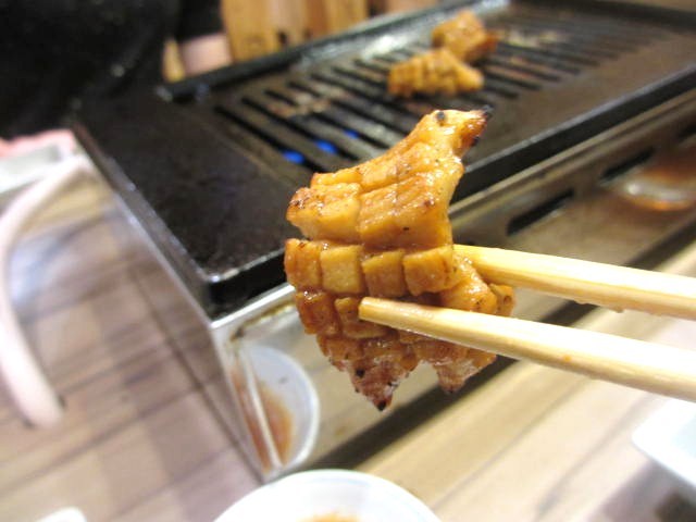 本当にさっとあぶるだけ!ロース専用のタレをつけて。口の中で