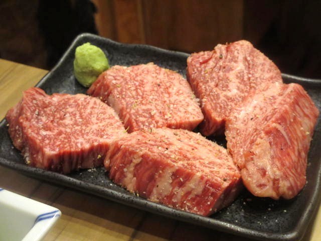 レアが好きならこのくらいで十分と言われ、わさびを乗せてぱくり。