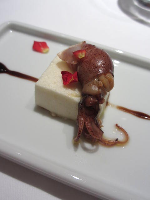 ホタルイカの下は新玉ねぎのムース バルサミコソース