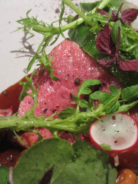 たっぷりの野菜の下に絶妙な火加減のオリーブ牛♪