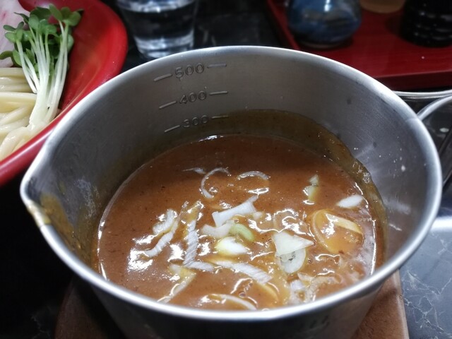 つけ汁は、甘味があり濃厚な豚骨系のどろっとした感じで麺がよく絡みます。