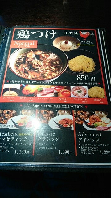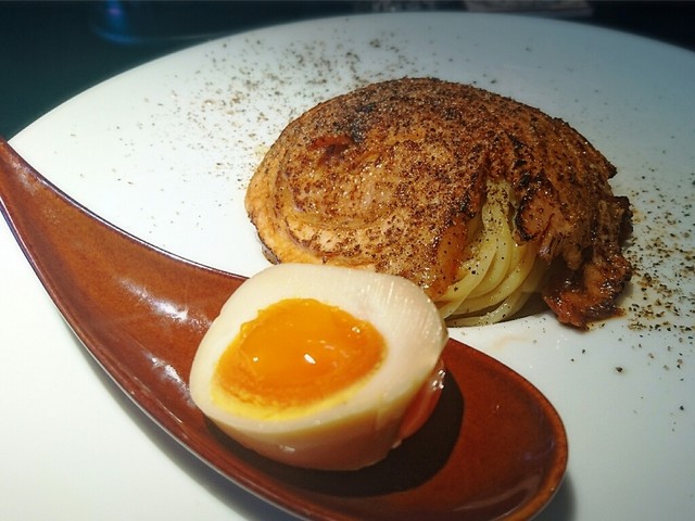 今回は、鶏つけ麺、トッピングレアチャーシューを注文。本日は、オープン4日目で煮玉子半玉がサービスでついてきました。