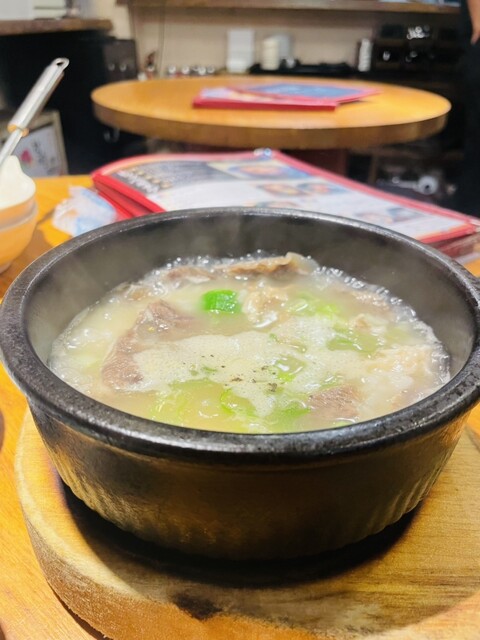 この日はサムギョプサル、チャンジャ、クッパを頼みました。サムギョプサルはお店の方に丁寧に焼いて頂けます。
