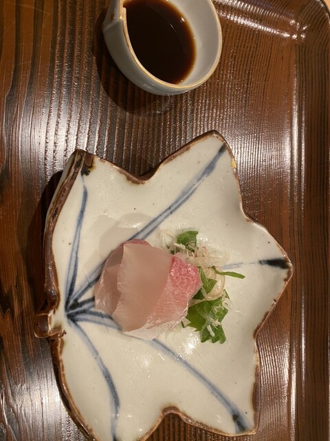 カンパチ: 昨日取れたモノを水槽で生かしたモノ、南蛮醤油 ストレスないせいか、しっとり。