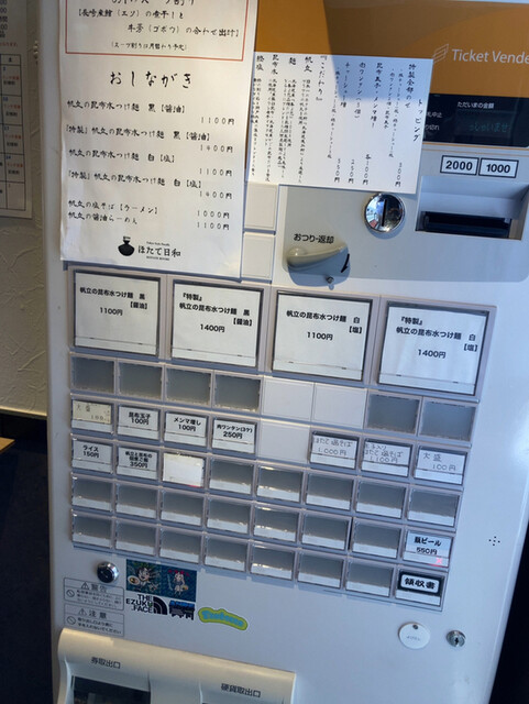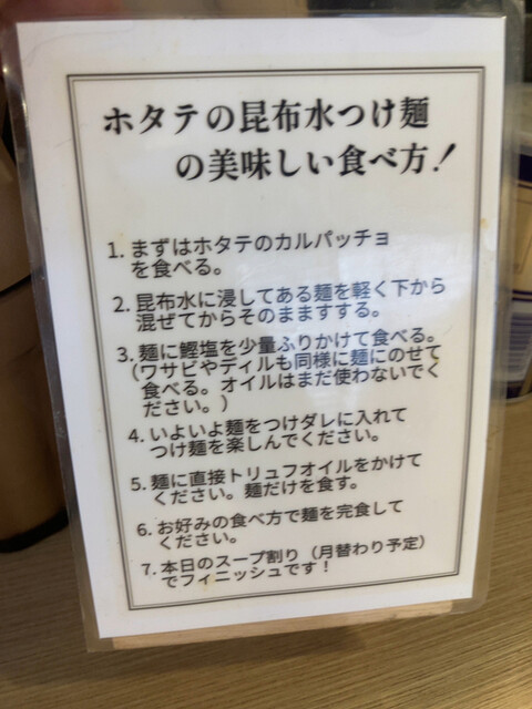オーダーは、帆立の昆布水つけ麺 白 1100円。