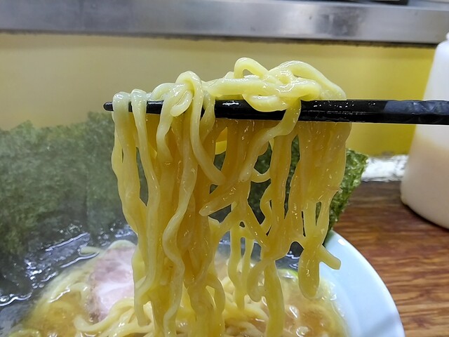 トロリと粘度ある味噌感あふれる家系味噌スープに酒井製麺中太麺が旨い!