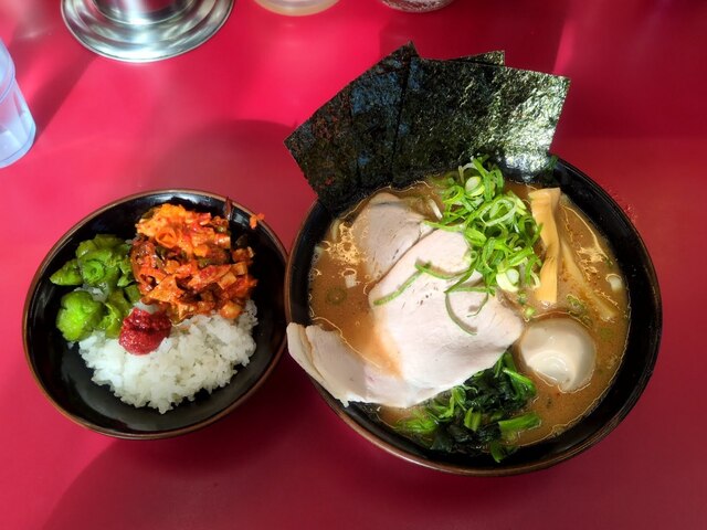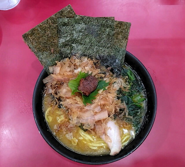 朝一のフレッシュでコクのある醤油豚骨スープに梅と鰹節の和風トッピングが最高です!