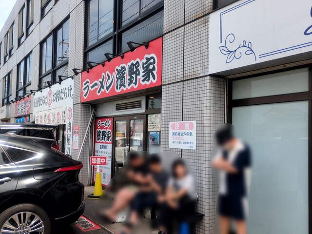 平日の今日は五井で昼食です。念願だった「ラーメン濱野家」さんに伺いました。皆さんご周知の通りこちらの店主は杉田家さんで修行されています。期待大ですね!五井駅からは徒歩10分ぐらいでしょうか。9時50分ごろ店着。先客4名に接続です。平日のこの時間でも開店前並びとは人気のほどが伺えますね。10時ちょっと過ぎに開店です。店員さんが入り口で店内へ案内してくれています。店内入り券売機でメニューをチョイス。せっかくなので得増しラーメン1,450円+半ライス100円をお願いしました。得増しラーメンはチャーシュー5枚+海苔8枚+味たまと大盤振る舞いです。席を案内され食券渡そうとすると、次の回の湯であげになるのでお聞きするまで食券手元に持っておいて下さいとのこと。4ロットで回しているんですね。しばらくして食券回収、麺カタでお願いしました。待つこと10分弱でしょうか、まずはライス着丼、続いてラーメンとご対l~麺!豚骨に鶏油のいい香りがしますよ。早速スープから頂きます。おおっ濃いですね~。濃いですがバランスいいですよ。トロリと濃厚な醤油豚骨スープは醤油ダレのキレと豚骨のまろやかなコクが見事に融合し、芳醇な香りがいいですね。麺は酒井製麺製の中太麺、モチモチとした食感と小麦の風味が、濃厚なスープと絶妙に絡み合いますね。うまいな~。チャーシューが最高です!スモーキーなチャーシューはもちもちした食感に豚肉本来の味がします。味たまは青森県産十六代真っ赤卵、先日野良裏家さんでも頂きましたが、黄身が濃~いですね。青菜は小松菜です。しゃきしゃきした食感がいいアクセントになっています。海苔の風味もよいですよ。ライスはしっかりお米がたっていて美味しい。そのライスに刻み生姜、豆板醤オンザライスにスープでひたひたにした海苔での海苔巻き!うまくない訳がありません、至福の瞬間です。あっという間に完食です。これは人気あるのわかりますね。次回もこのオーダーかな。退店した10時20分ごろでは外待ち12名になってました。