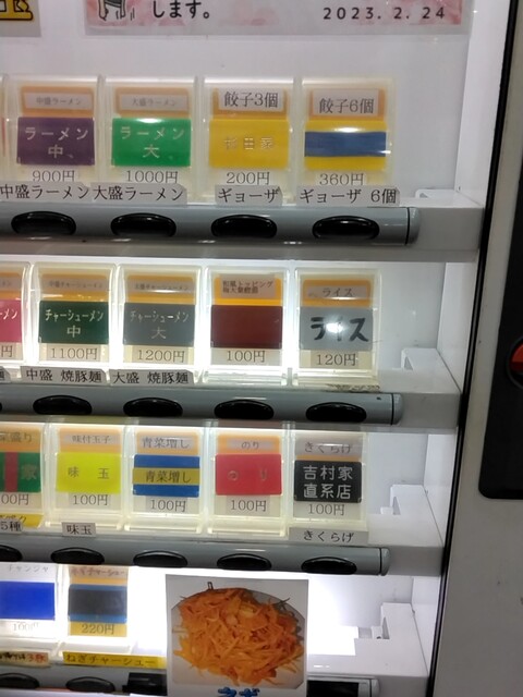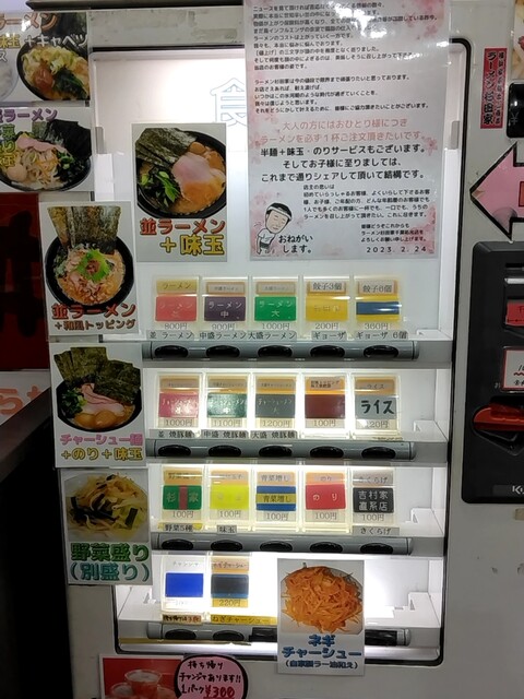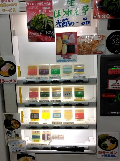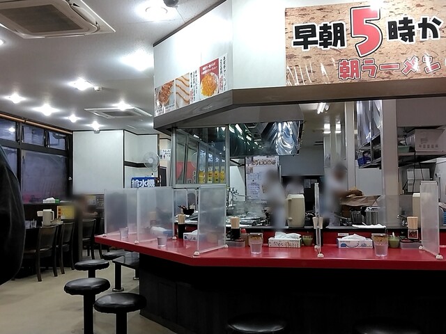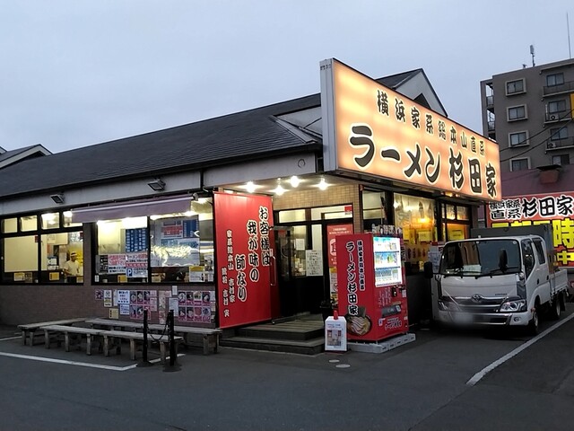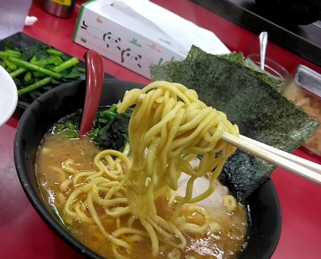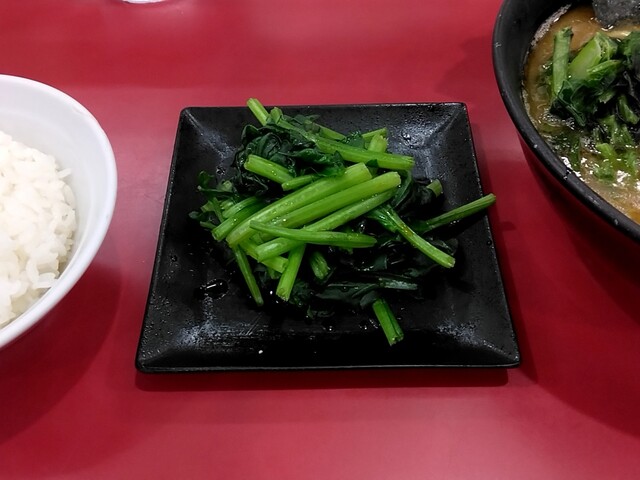 平日の今日は早起きして杉田家千葉祐光店に伺いました。AM4時45分頃店着、第一駐車場残り2台しか空いてません・・・既に先客7名に接続です。先週のアド街で新杉田本店がテレビ放映あったのが影響あるんでしょうか?前2回開店同時ぐらいに伺った時より早朝のお客様多い感じです。AM5時ちょうどに開店です。券売機でメニューをチョイス。おっ左型の券売機が新しくなってますね。今日はラーメン並800円、ライス120円、生ほうれん草180円をお願いしました。ロットが7名づつの様で7名席に着いたところで窓側の席の1番に座りお待ちくださいとの事。ですが、すぐにカウンターに案内されました。食券渡す際に好みを聞かれます。麺カタでお願いしました。待つこと7~8分ぐらいでしょうか、ご対~麺!生ほうれん草は100gとの事でボリュームありますよ。まずはスープから頂きます。やっぱり旨いな~。粘度高めでねっとりとして濃厚豚骨は醤油のキレ、豚骨、鶏油のバランスが最高ですね!生ほうれん草がシャキシャキで旨い。こだわりのかけ醤油がかかった生ほうれん草は甘みたっぷり、シャキシャキです。途中麺に投入、旨いな~。麺は固めで正解、チャーシューはスモーキーで相変わらず旨い。ライスにはもちろん豆板醤+短冊生姜オンザライスのスープでヒタヒタにした海苔での海苔巻き!最高の朝食でした。次回は野菜盛トッピングにしてみたいと思います。