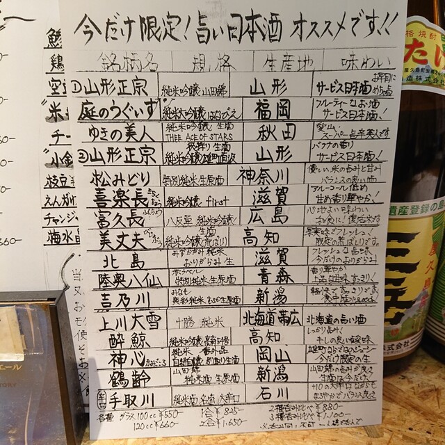 期間限定で提供の日本酒から、辛めすっきりのものを選んでもらいました。