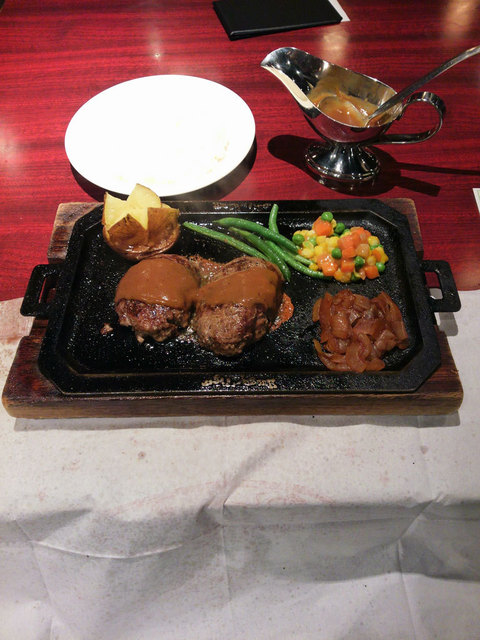 向かいの席に座っていた客のところにハンバーグが運ばれてきました。