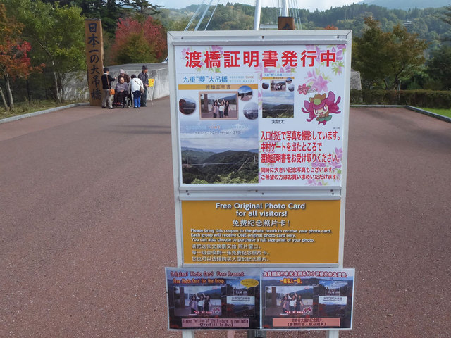 お土産を1,000円以上買うと写真をのせた渡橋証明書をくれるという商売を橋の手前でやっていますが、渡った先の橋を再入場すると入場チケットにスタンプを押してくれます。