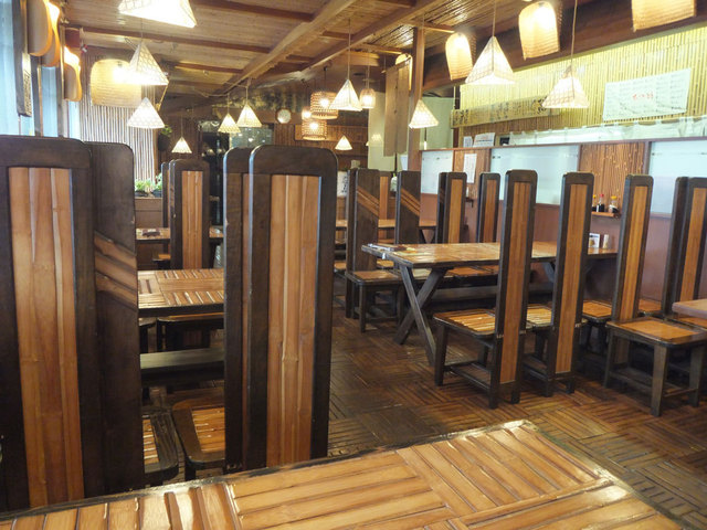 テーブルも椅子も竹製です。とにかく座りにくい。