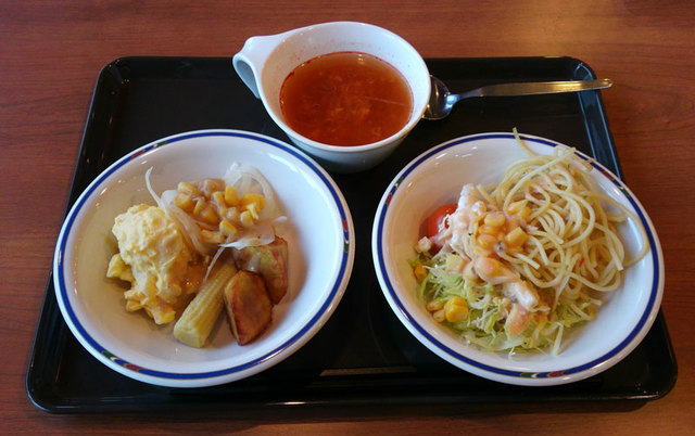それまでに、ドリンクやサラダ、スープなどを取りに行っておきます。