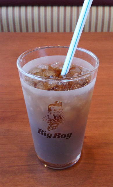 【2013年12月】グラスにビッグボーイのキャラクターの絵が載ってます。「ボビー」という名前だそうです。これ、持って帰っちゃう人いそうですけど?