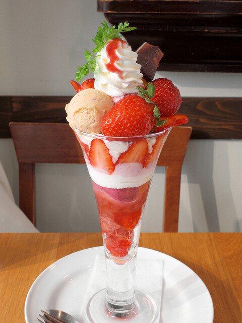 15日はイチゴの日・・・と云う事で、日本橋久松町のフルーツパーラーで『Fruit Chef』で『いちごの日SPいちごパフェ』を頂きました。