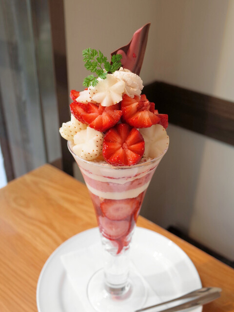 日本橋久松町のフルーツパーラー『Fruit Chef』で希少種いちごの古都華のグラスパフェを頂きました。
