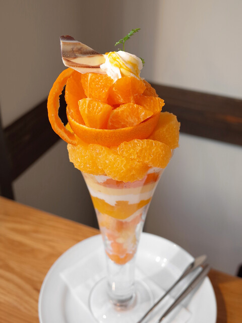 日本橋久松町のフルーツパーラー『Fruit Chef』で柑橘DXパフェを頂きました。これ、イチゴのパフェに勝るとも劣らぬ美味しさ♪♪♪あいか、南柑、ポンカン、伊予柑・・・どれも云う事無し♪♪♪