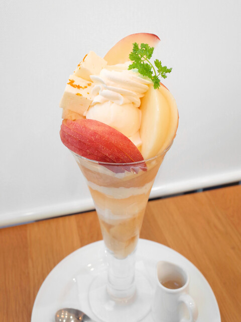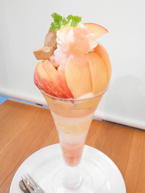 8月下旬、本年最後のももパフェを頂きに、予約&訪問。白桃と黄桃を使ったパフェになります。