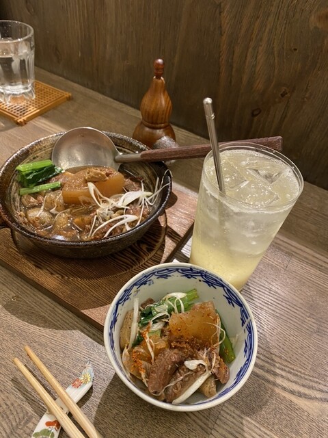 まずは自家製レモンサワー。自家製だなぁと思わせる皮のざらつき感がたまらない。なんか身体にいい気がする