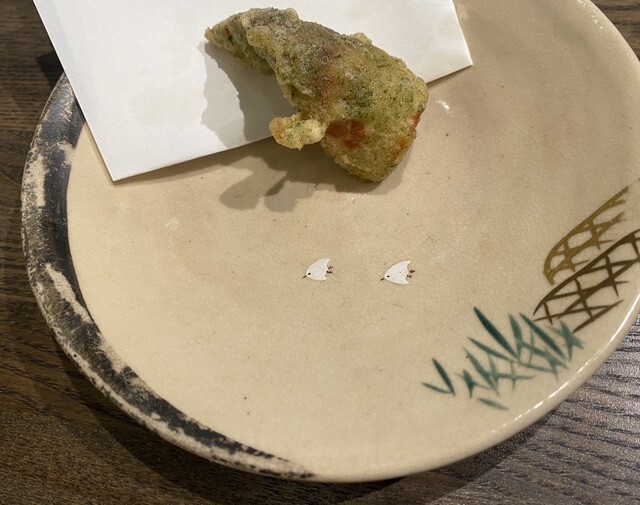 太刀魚を炭焼きか炙りか悩んでいたら、春野菜の天ぷらと一緒に天ぷらでも美味しいとの事。もちろんそれでっ!ってお願いしました。蕗のとうの苦味、うどの爽やかさ、太刀魚派ふっくらサクサク。あー幸せですなー。熱燗で最高!