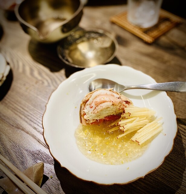 里芋のかにあん!これは感動するうまさでした。揚げて周りが少しサクッと中はねっとりの里芋に蟹のいいお出汁の餡が絡まり美味いーーー!とつい声が出てしまいます。あー、ずっと食べていたい…。