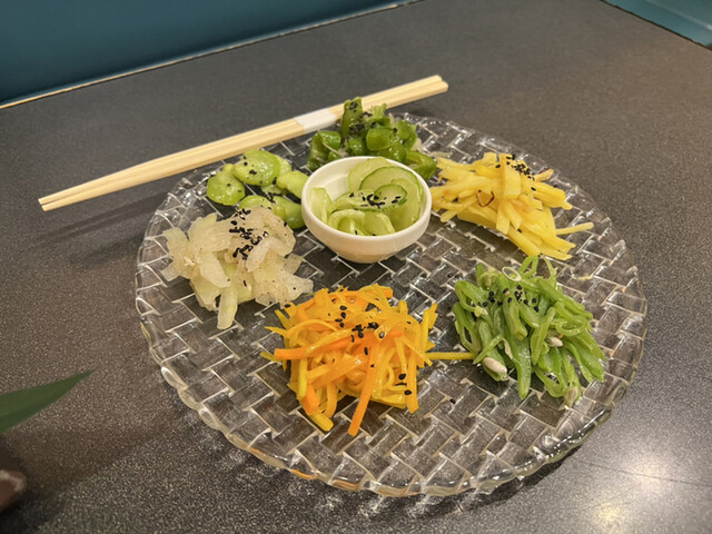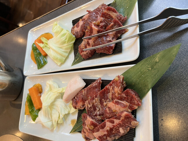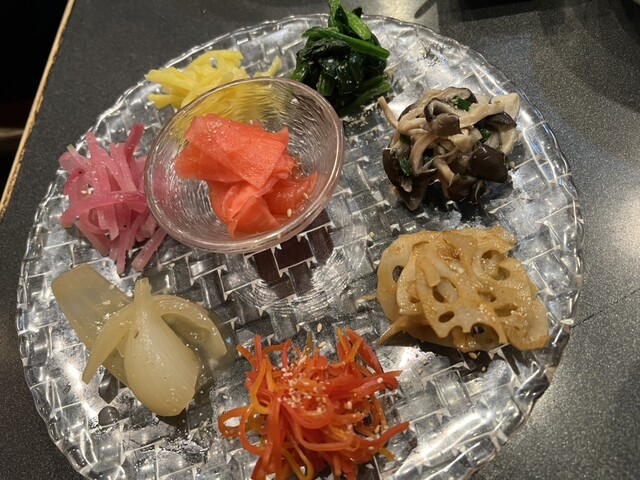 いつもの旬のナムル、白センマイ、特上タン、特選はらみ(わさび醤油、塩)、ヒウチのしゃぶ焼き、タレはらみ、純豆腐などを食べました。