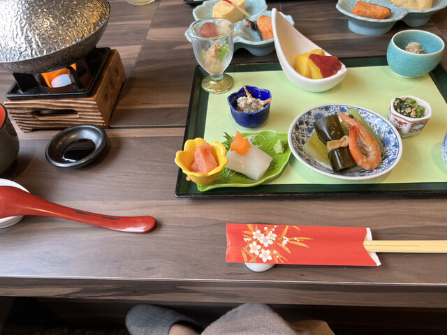 ここはアレルギーや苦手食材があると変更に別途1000円かかるので変更はせず今回は牡蠣の天ぷらはなしにしました。量は我々にはいつも充分です。