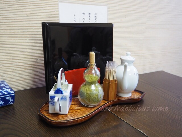 卓上のたれ、黒文字、山椒、醤油