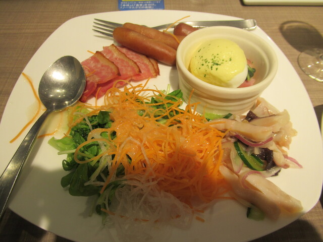 もちろん、サラダは必須で卵料理をまずチョイス。
