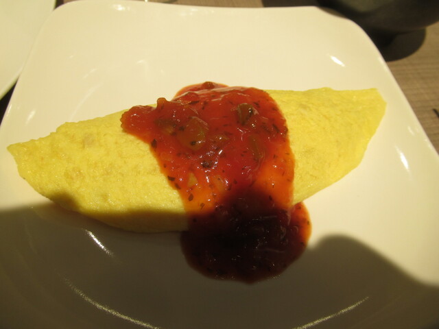 エッグベネディクトにオムレツ、あとから目玉焼きもいただきました。