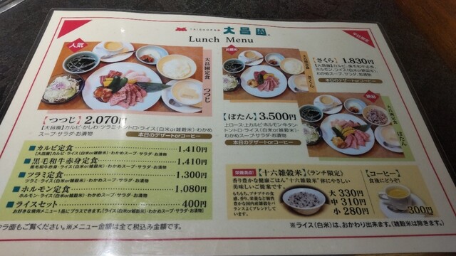平日限定メニューから選んだのは「大昌園定食 さくら(1,830円、込)」。