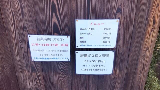 国道442号線から微妙に奥に入った川沿いに佇むうなぎ料理のお店です。