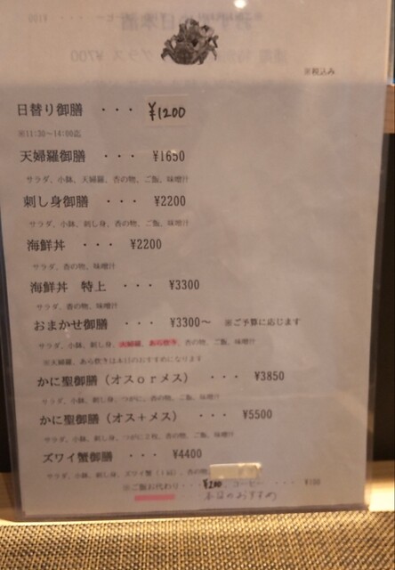 注文したのは「かに飯、かに汁セット(1,100円、込)」。