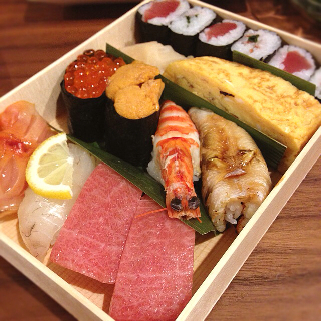と言われて器だと悪いなーと思って箱にしましたが、大将曰く、箱だとフタをするのでウニやイクラが潰れてしまうとのこと。