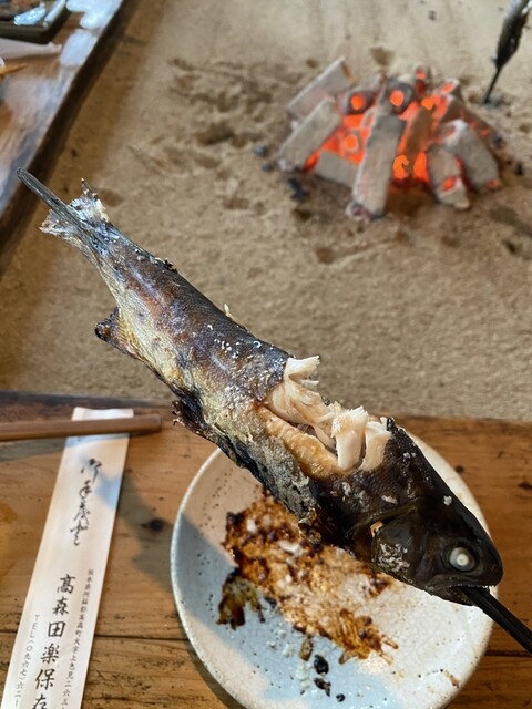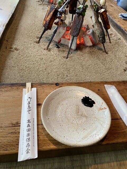 囲炉裏焼きは自然の食材と甘味噌がよく合う