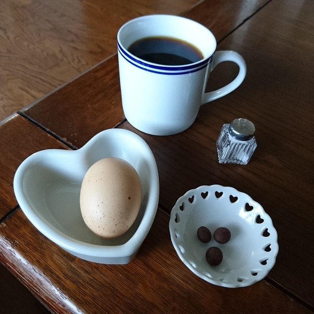 ゆで卵と六花亭のチョコ コンランショップのマグで