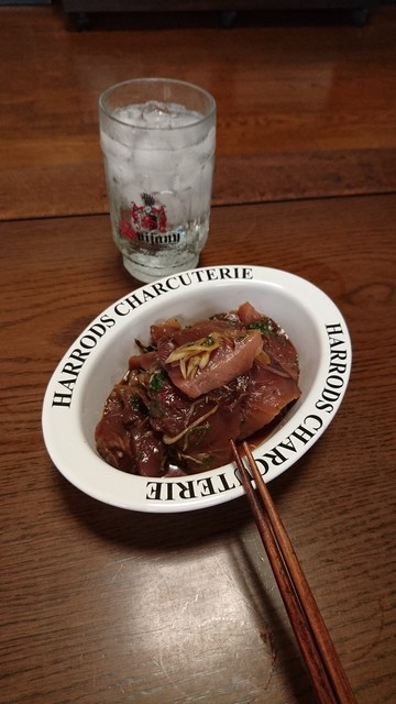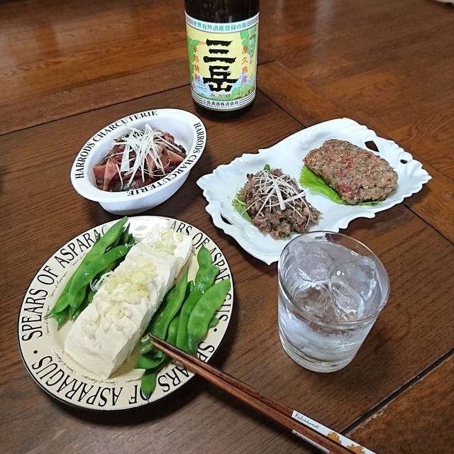 鯵のなめろうと韓国風たたき鰹の漬けを豆腐といただく