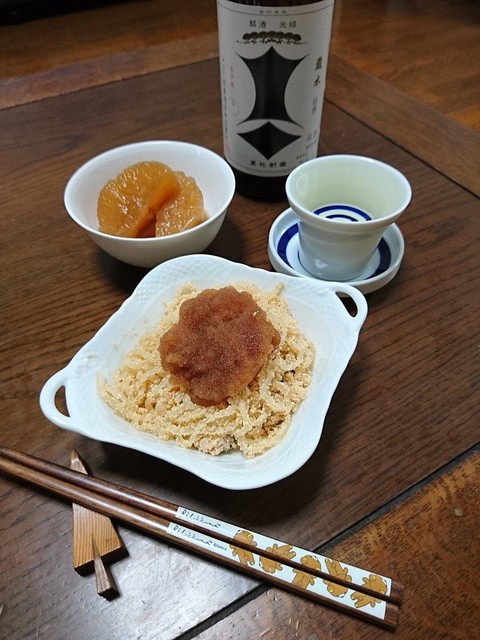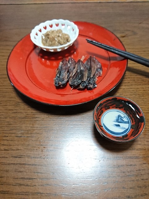古物 晦日の年取り 蛍烏賊の干物とかつおしおから