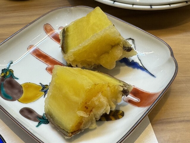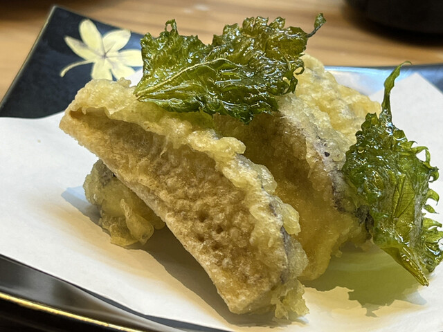 水茄子の浅漬けの天ぷらが水々しくてほんのり塩気があって日本酒にバッチリ合います‼️