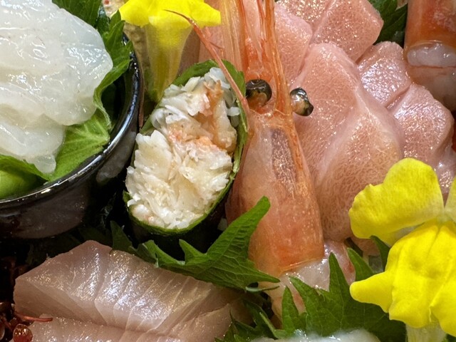 ぶりとろ、甘えび、ずわいがに、しろえび、本鮪大トロ炙り…どれも新鮮‼️