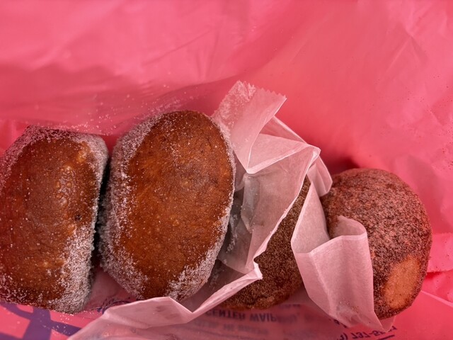 あとの2つは、ワールドポーターズ店と比べると本場ハワイの店舗の方がマラサダ自体がふっくらとしていて見た目から大きさがあります。
