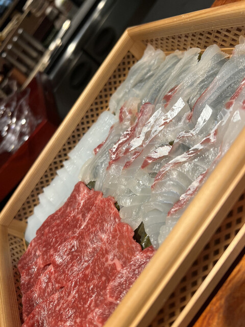そこからお肉とお造りにうにをそのまま混ぜた醬油をぶっかける。
