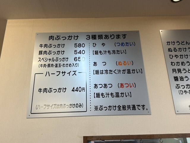 初日にスペシャルぶっかけ(牛・豚・わかめ・温玉)+かき揚げ、最終日にざるをいただきました。普通のサイズで十分な量です。既に大盛りです。