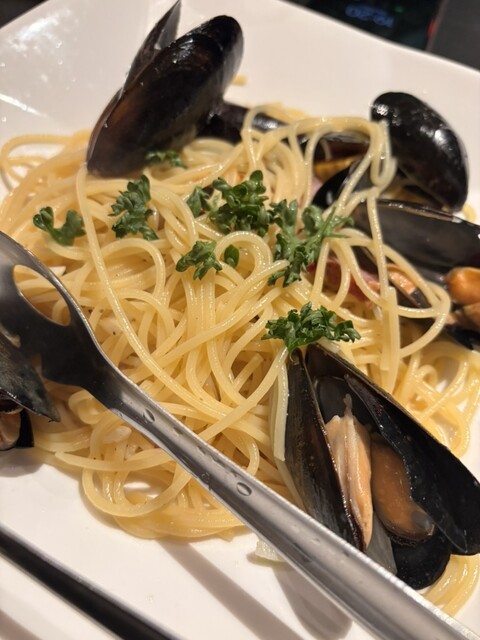 ピザは香ばしく、チーズがとろ〜りサクサク生地で美味しい!ムール貝のパスタは旨みたっぷりパセリの香りが良い香り〜╰(*´︶`*)╯ボリューミーでお腹いっぱいなりました!