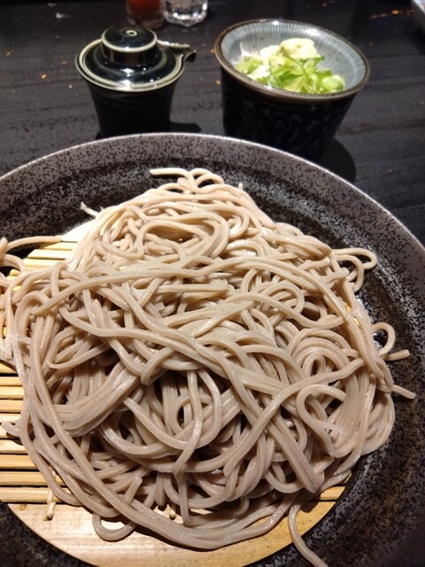 日本酒は七本槍を。アテは日高産真だちの天ぷら(780円)に、ラー油で食べる鶏ハム(580円)を注文。さらに〆でざる蕎麦をいただきました。