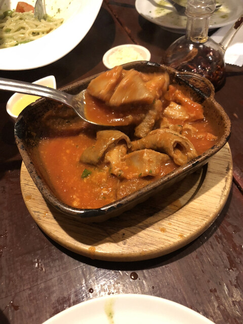 トリッパ、フライドポテト、日替わりランチパスタ(トマトとアボガドのバジルソース)オマール海老味噌を使ったトマトソースパスタ、クアトロフォルマッジ、マリナーラをいただきました。