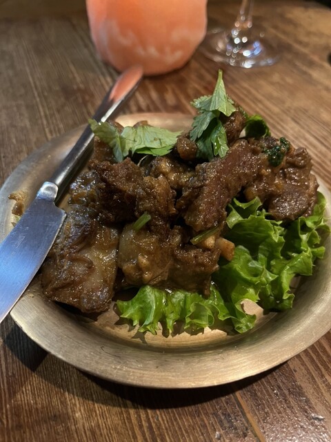 山羊なのにやっぱり臭みが全くなくて、食べやすい。ラムと同じくらいかな。スパイスを使って臭みを消しているのでしょうか。骨の周りの肉と脂が美味しいんですよね!